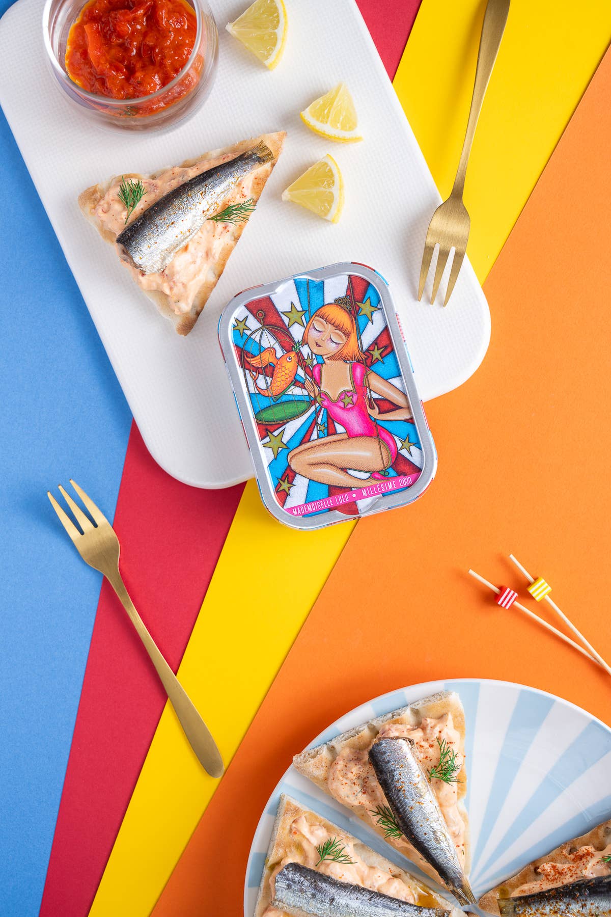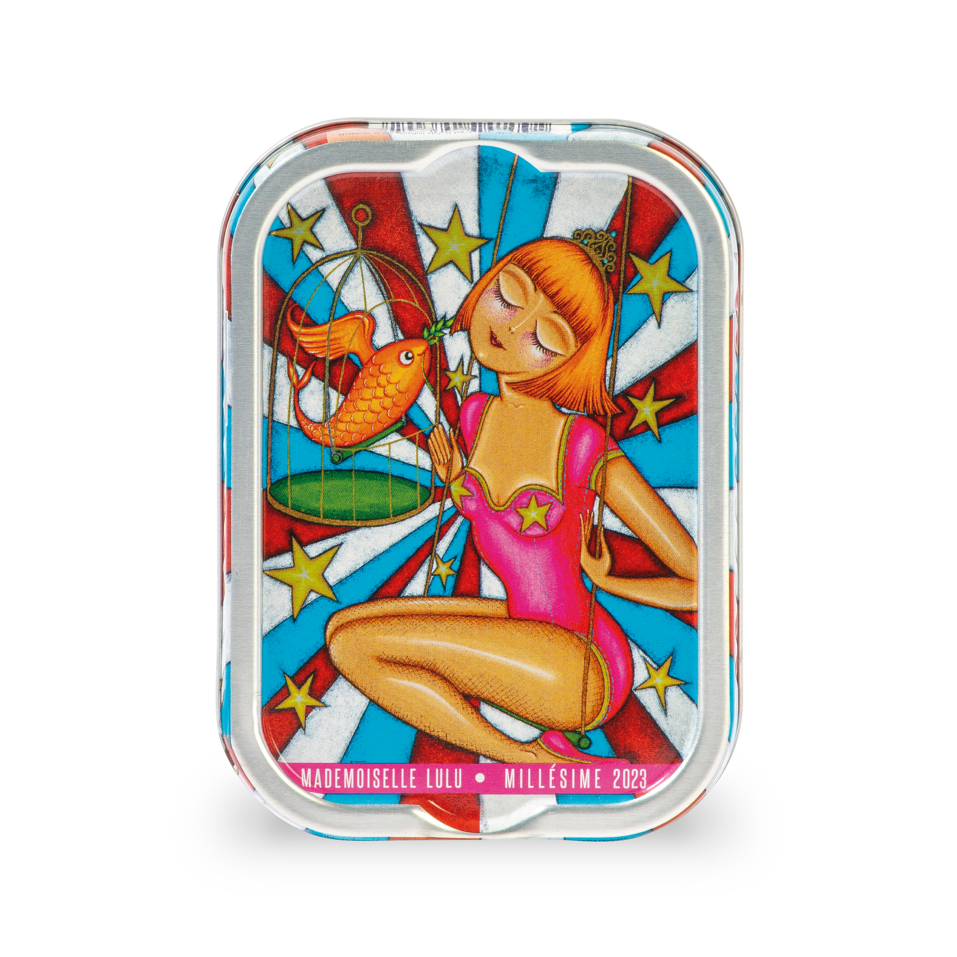 Franska årgångssardiner med förpackning designad av den franske konstnären Coralie Joulin. Lika vackert som välsmakande. Dessa sardiner är av yttersta kvalitét. 10 års hållbarhet! Vänd burken var sjätte månad.
