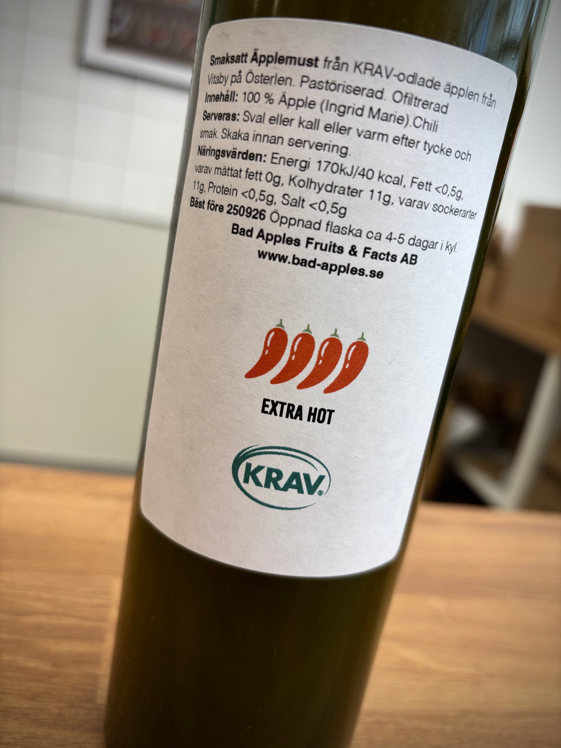 Ingredienser: 100 % Ăpple (Ingrid Marie), Chili. Pastöriserad. Ofiltrerad.
