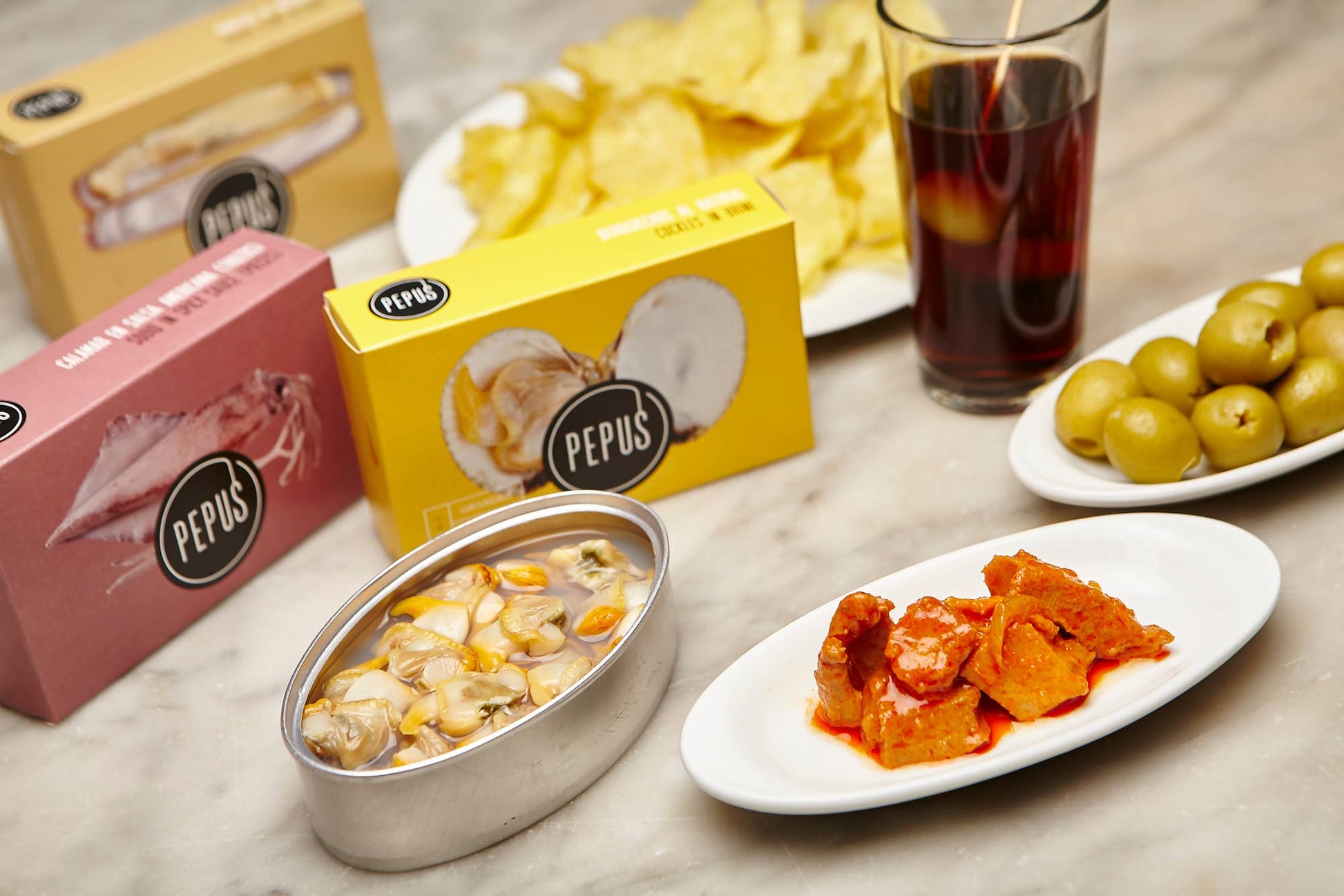 Denna delikata blĂ€ckfisk frĂ„n Pepus tillagas med rĂ„varor av högsta kvalitet och serveras i en mild, sĂ„s med lĂ€tt kryddig touch. BlĂ€ckfisken hackas och kokas varsamt innan den blandas med sĂ„sen som lyfter fram havssmaken och ger ett smaksatt tillskott. Resultatet blir en elegant tapasdelikatess!Â