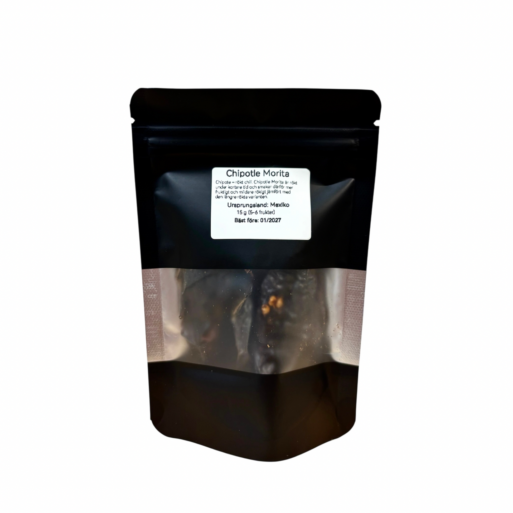 Chipotle Morita Àr rökt och torkad röd jalapeño med en hÀrligt rökig, lÀtt söt och fruktig smak. Den Àr rökt kortare tid Àn andra chipotle-sorter, vilket ger en mjukare rökighet och rundare arom. Perfekt i sÄser, marinader, grytor, BBQ-rÀtter och mexikansk matlagning nÀr du vill addera djup och lagom hetta.