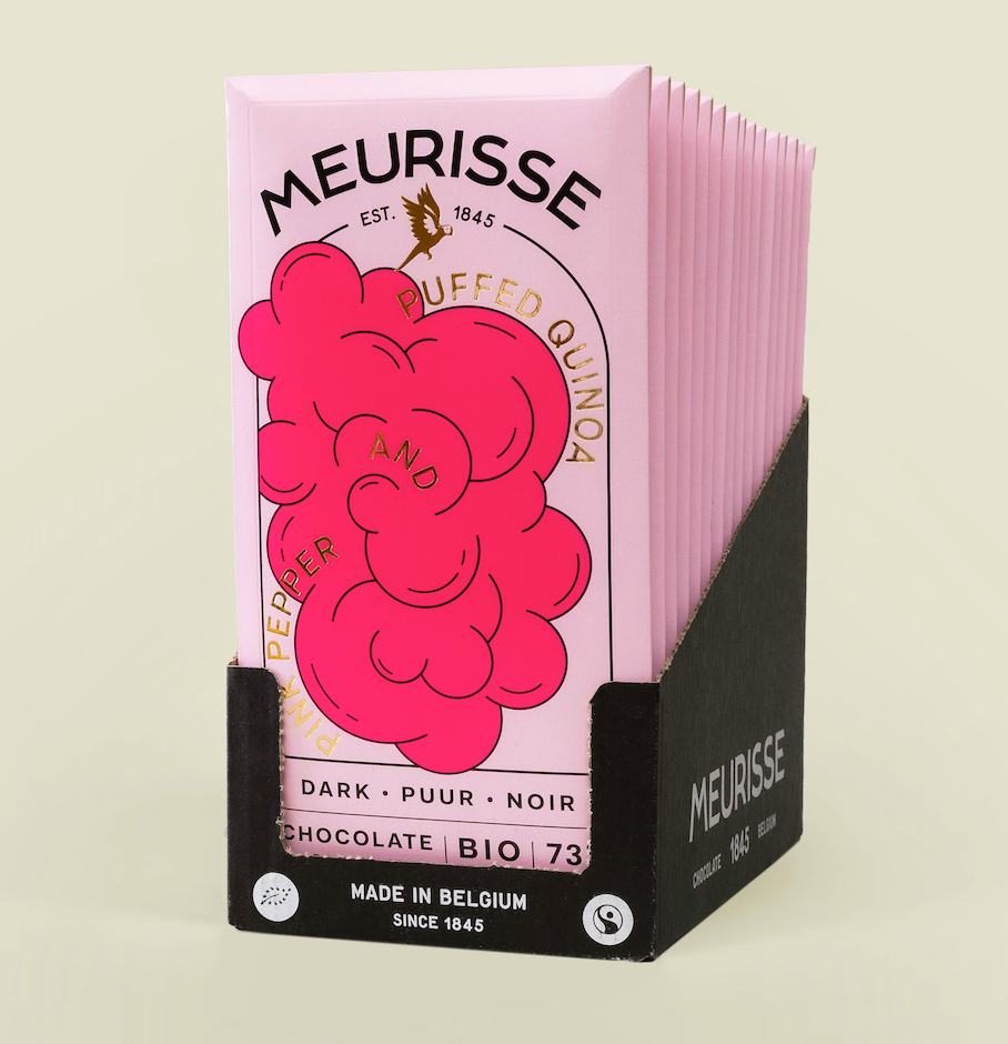 Meurisse - Ekologisk mörk choklad med puffad quinoa och rosa paprika