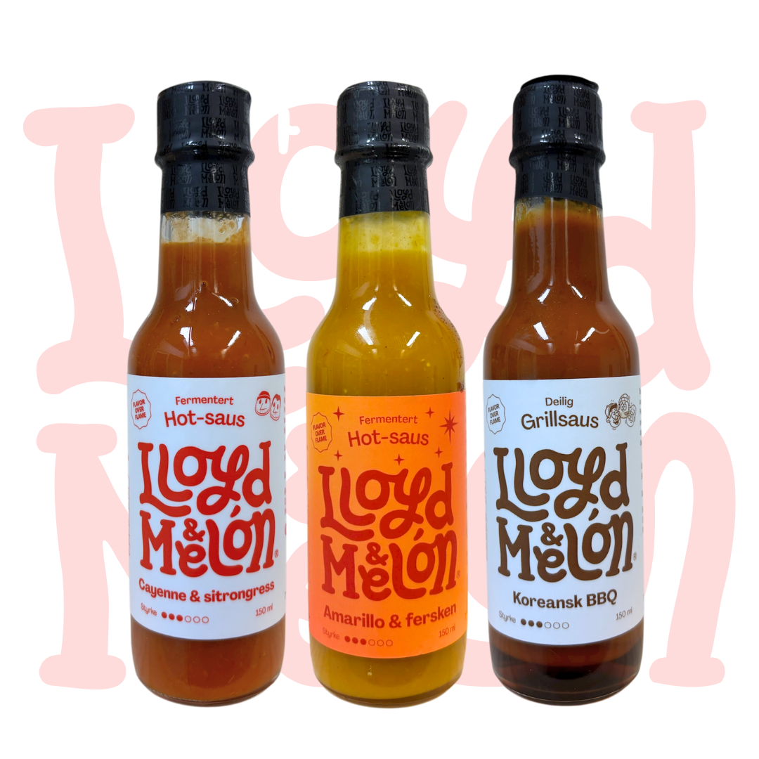 UpptÀck tre unika och smakrika hot sauces frÄn norska Lloyd & Melon. Detta smakpaket samlar tre av deras mest omtyckta sÄser, perfekta för dig som vill utforska ett brett spektrum av fruktighet, umami och frisk chilihetta.