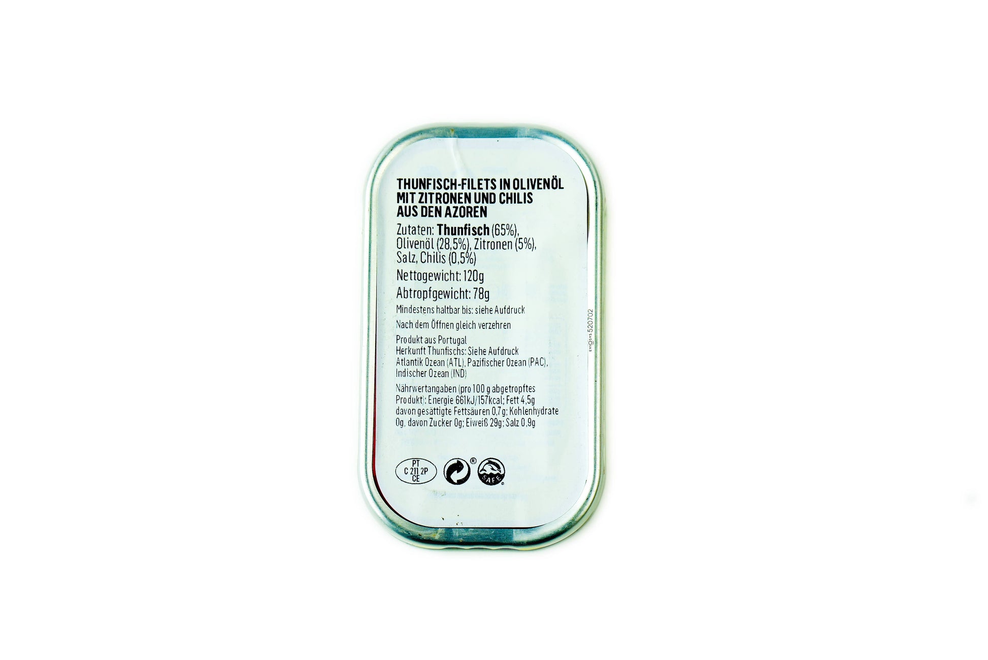Inlagda tonfiskfiléer i olivolja med citron och chili. En genuin kvalitetsupplevelse i ett premiumsortiment för Àkta finsmakare. Filéer gjorda av den bÀsta tonfiskfisken, rengjorda och konserverade för hand i över 100 Är. Inga extra, bara smak.
